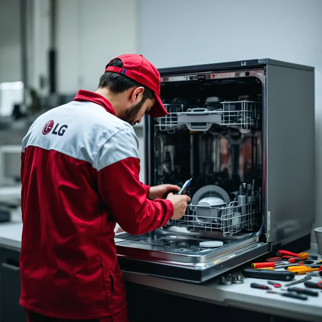 خدمات صيانة متكاملة لغسالات الأطباق تشمل أعطال التنظيف، التصريف، تسريب المياه، والأعطال الكهربائية والميكانيكية.
